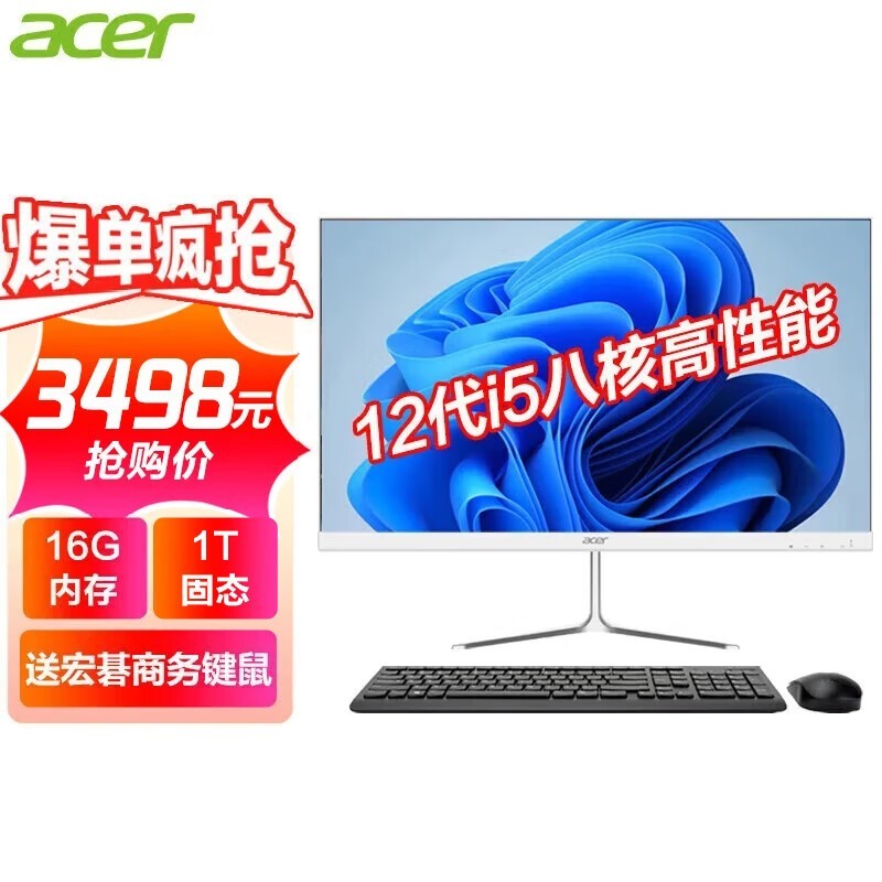 宏碁23.8英寸高配一体机电脑整机仅售3487元