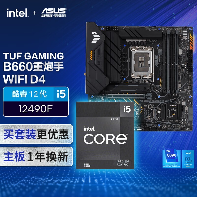 华硕B660M主板配英特尔i5处理器 组装特价1748元