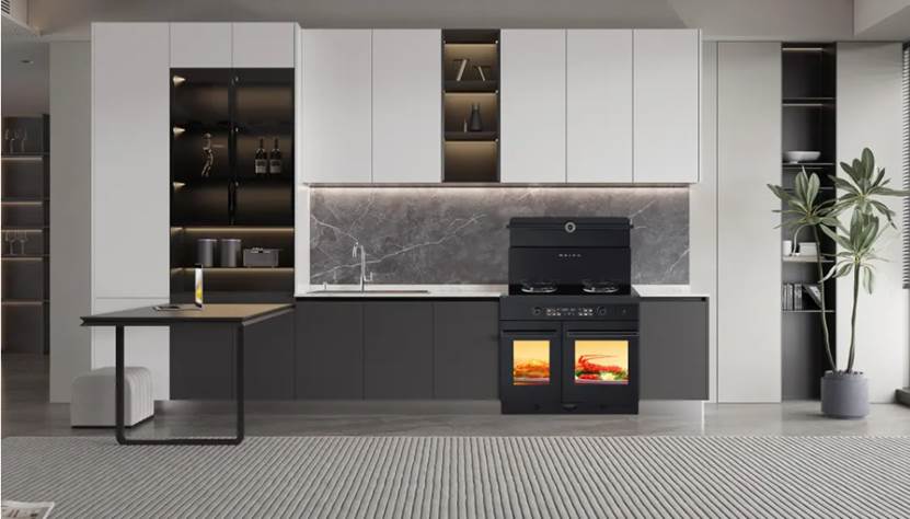 而一台性能优异的集成灶就能满足一切关于装修开放式厨房的要求,例如美大M906变频集成灶,采用AI智慧变频技术,硬件软件双变频,实时感知烟道阻力变化,智能调节风机转速,自动巡航增压,动态调节风量风压,时刻保证稳定有效的排量,排烟更彻底更强劲,纵使厨房开放,也不着一丝烟味。