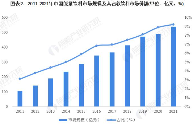 光大证券的报告显示,2020年,中国能量饮料零售市场规模约447.8亿元,2014-2020年复合年均增长率高达11.35%,是软饮料中增速最快的细分品类。