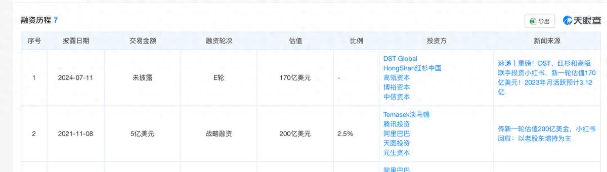 天眼查APP融资信息显示,小红书E轮估值170亿美元,这轮“泼天富贵”后,估值怕是更会高。