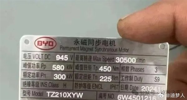 日前,有博主分享了网传的比亚迪TZ210XYW超级电机实物图和铭牌照片。