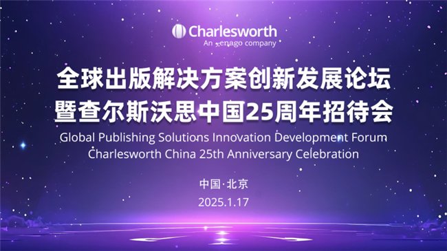 2025年1月17日,查尔斯沃思·中国在北京国际饭店会议中心成功举办全球出版解决方案创新发展论坛暨25周年招待会。此次活动聚焦学术出版领域的创新与合作,邀请业内专家、合作伙伴及重要客户齐聚一堂,共同见证查尔斯沃思·中国的成长与成就。