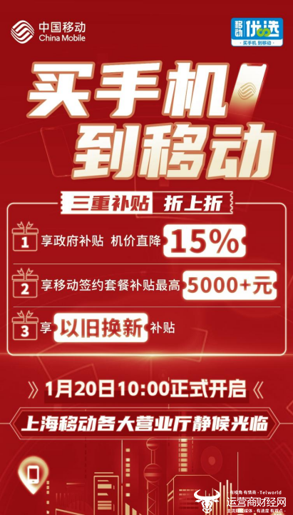 1月20日10时起,国家“两新”补贴启动。此次国补再次扩围,手机、智能手表、平板的购新补贴到位,为消费者带来了实实在在的优惠。在政府大力优惠补贴的基础上,上海移动也适时推出多元化的促销费活动,让消费者可同享国补、移动购机直降和以旧换新补贴,以三重福利满足群众多样消费需求,充分彰显企业的社会责任。