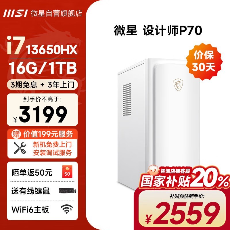 微星 P70 商用台式机 13代酷睿 i7 处理器 仅售3199元