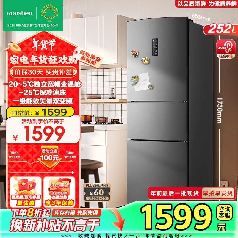 容声 BCD-252WD18NP 冰箱优惠来袭 一级能效节能环保
