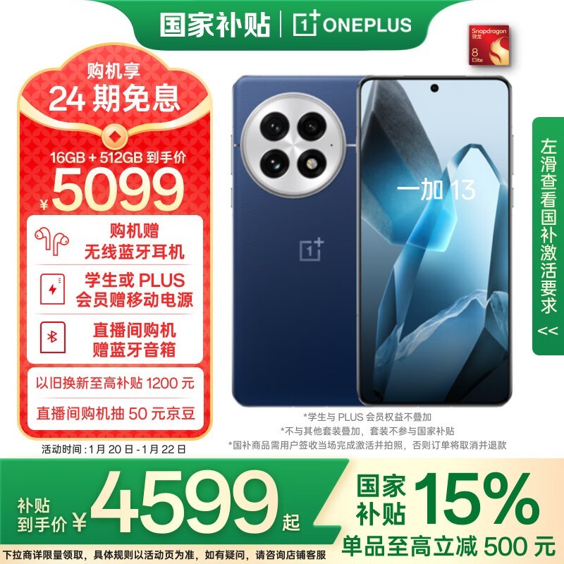 一加13手机限时优惠 4492元入手立减15%