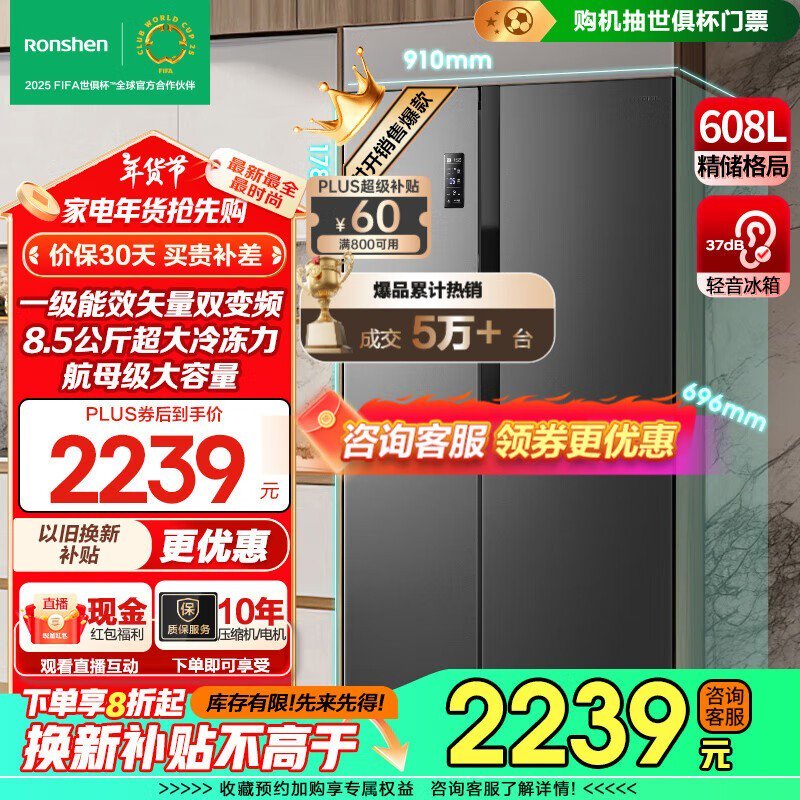 容声608升对开门冰箱只要1500多