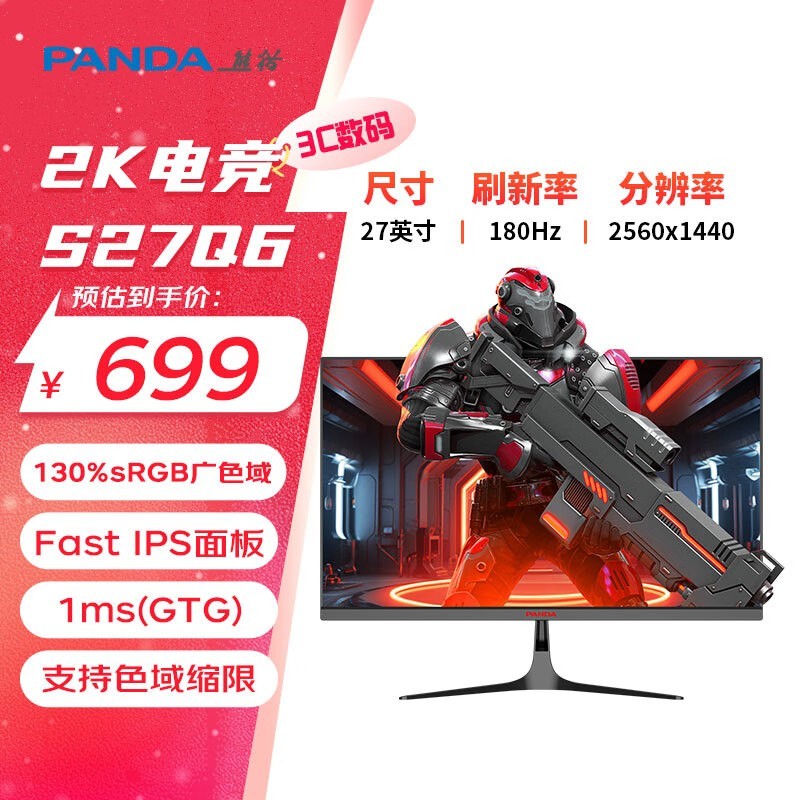 熊猫27英寸电竞显示器只要699元!好价难得一见