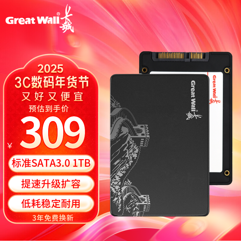 长城S300系列 1TB SATA3.0 固态硬盘 特价抢购仅需299元