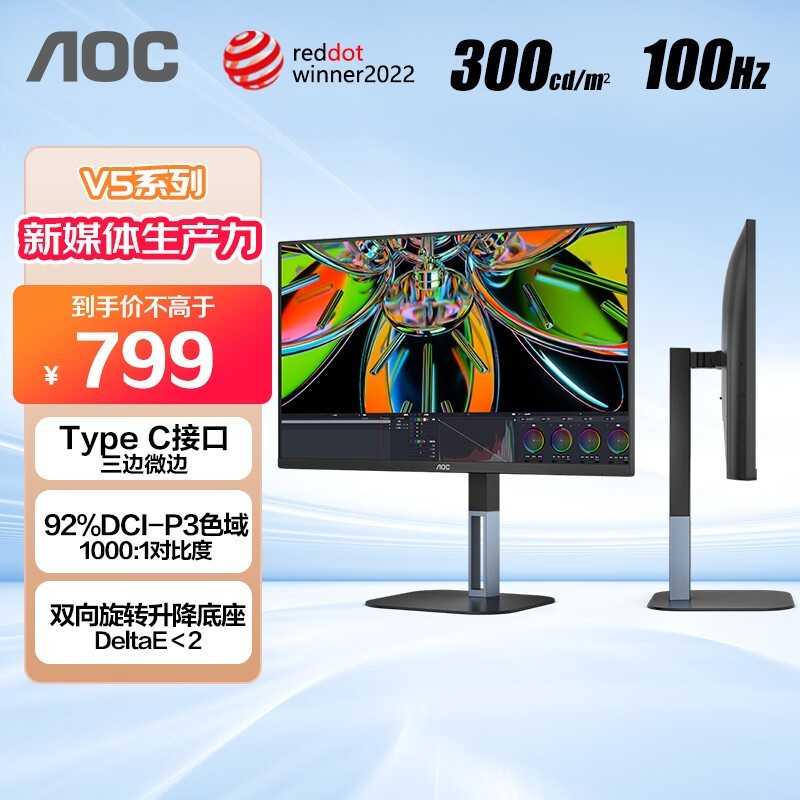 AOC 24V5C2显示器774元秒杀!