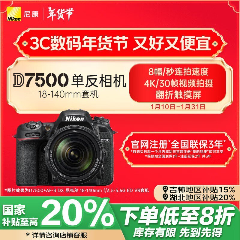尼康D7500数码单反相机 搭配18-140mm镜头仅售5595元