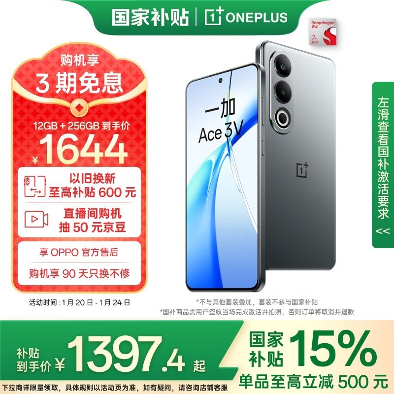 一加 OnePlus Ace 3V 手机售价低至1372元