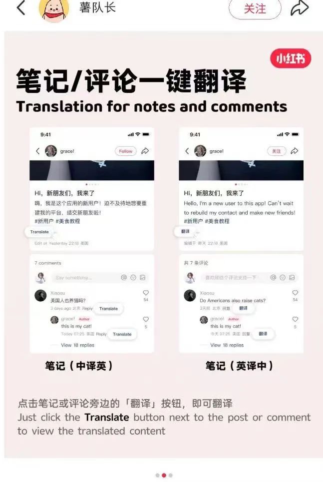 小红书上线翻译新功能