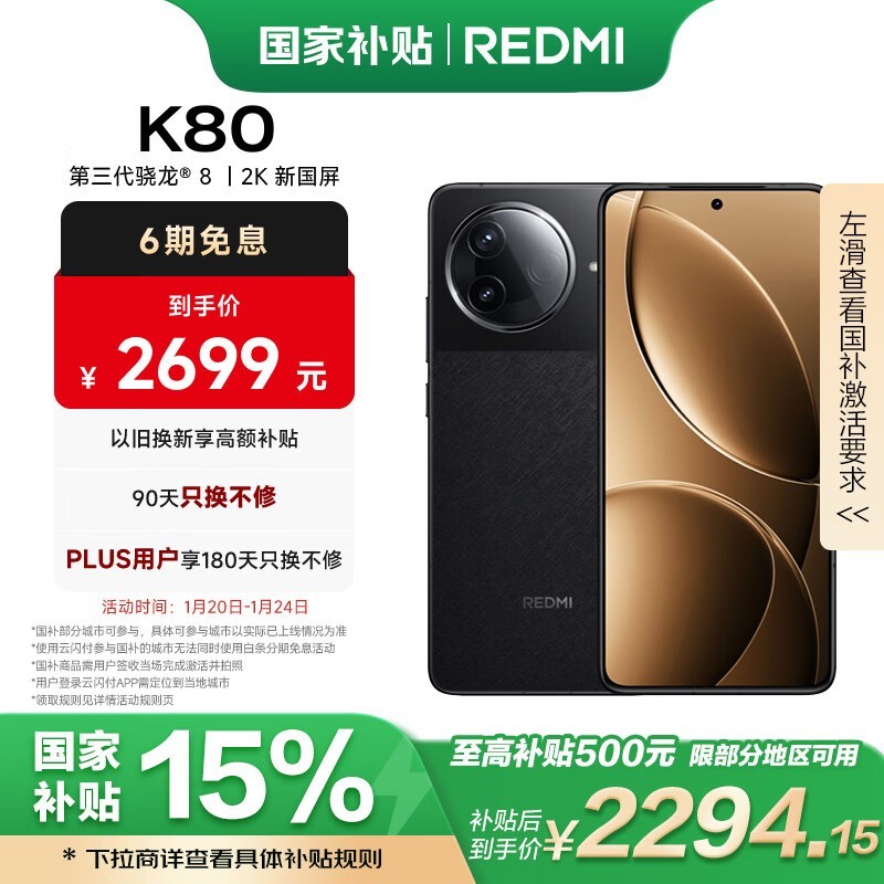 Redmi K80 5G手机16GB+256GB 玄夜黑优惠仅需2277元!