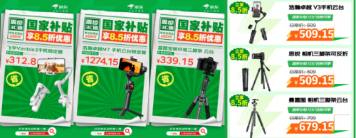 喜欢拍照又苦恼于手抖?那正好可以趁国家补贴上线来京东低价换新稳定器和三脚架。稳定器方面,飞宇Vimble3手机稳定器使用国家补贴享8.5折优惠,到手价312.8元;浩瀚卓越M7手机云台稳定器也可享国家补贴8.5折优惠,到手价1274.15元;浩瀚卓越V3手机云台使用国家补贴立省15%,到手价509.15元。