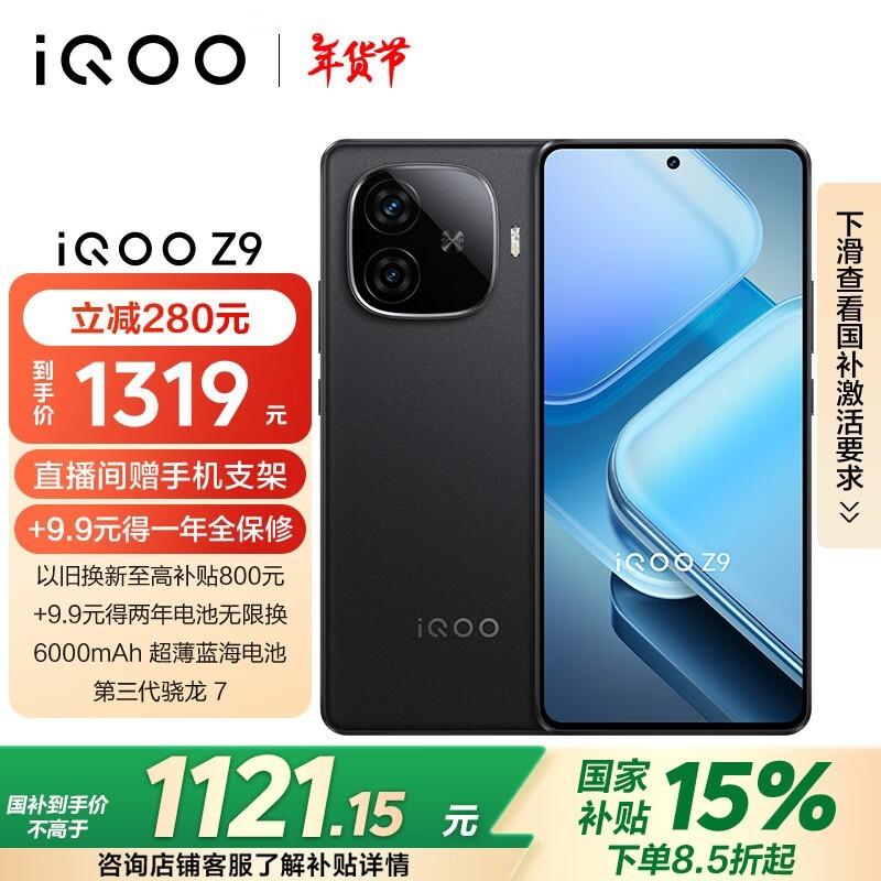 iQOO Z9手机 旗舰同款 轻薄便携 1121元到手