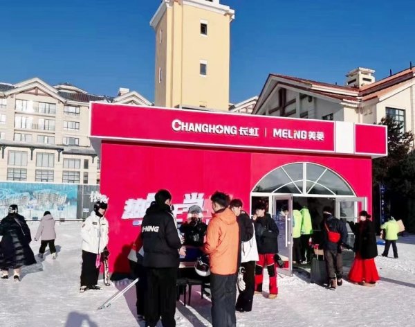 在亚布力雪场,长虹不仅搭建了全民冰雪运动的绝佳场景,同时也将长虹的科技力量透过“虹馆”传递给每一位冰雪运动的爱好者。在虹馆中,长虹旗下的AI TV、空调、冰箱、洗衣机、茶吧机等明星产品悉数亮相,在冰雪互动中深度触达消费者。
