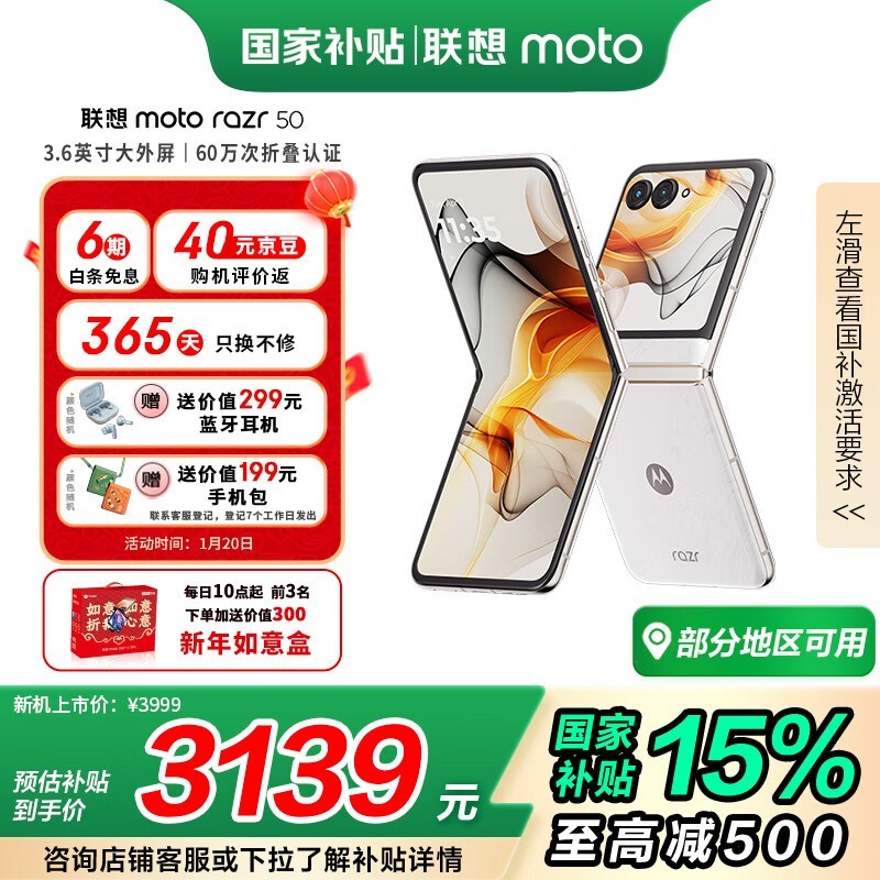 摩托罗拉moto razr 50 5G折叠屏手机直降15% 国补后仅售3139元