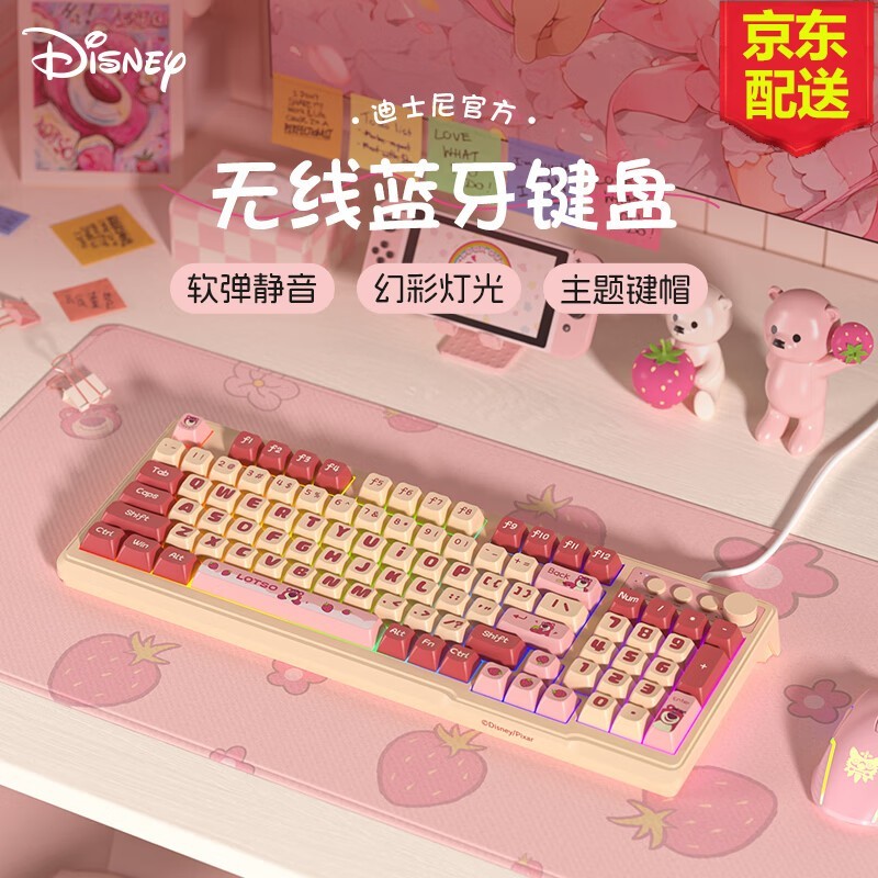 迪士尼草莓熊双模键盘,智能背光灯119元入手
