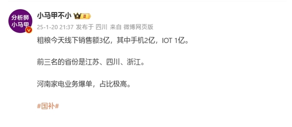 据博主@小马甲不小 爆料,小米今天光线下销售额就达到了3亿,其中手机产品占2亿,IOT产品占1亿。