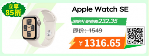 京东3C“国补”的落实,让广受消费者青睐的Apple Watch产品更加优惠。屏幕超大、空间更足、设计更轻薄、佩戴更舒适的Apple Watch S10享国家补贴直降397.35元,原价2649元到手价2251.65元。还有打电话、发信息和收通知都能在手腕上操作的Apple Watch SE,原价1549元,到手价仅需1316.65元。