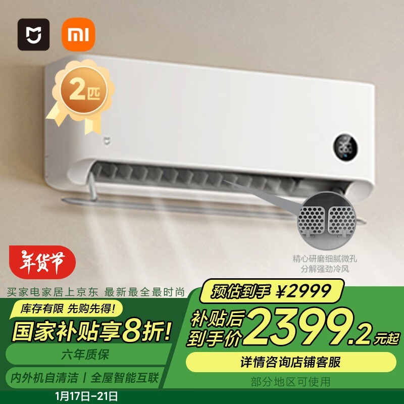 小米2匹壁挂式空调限时抢购!原价2341元,现在仅售1839元!