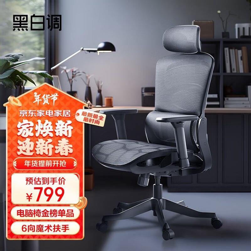 黑白调P2 Pro人体工学椅E1人工力学座椅电脑椅 760元包邮到手