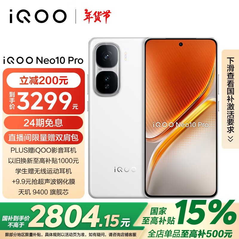 iQOO Neo10 Pro 5G手机优惠至3299元!