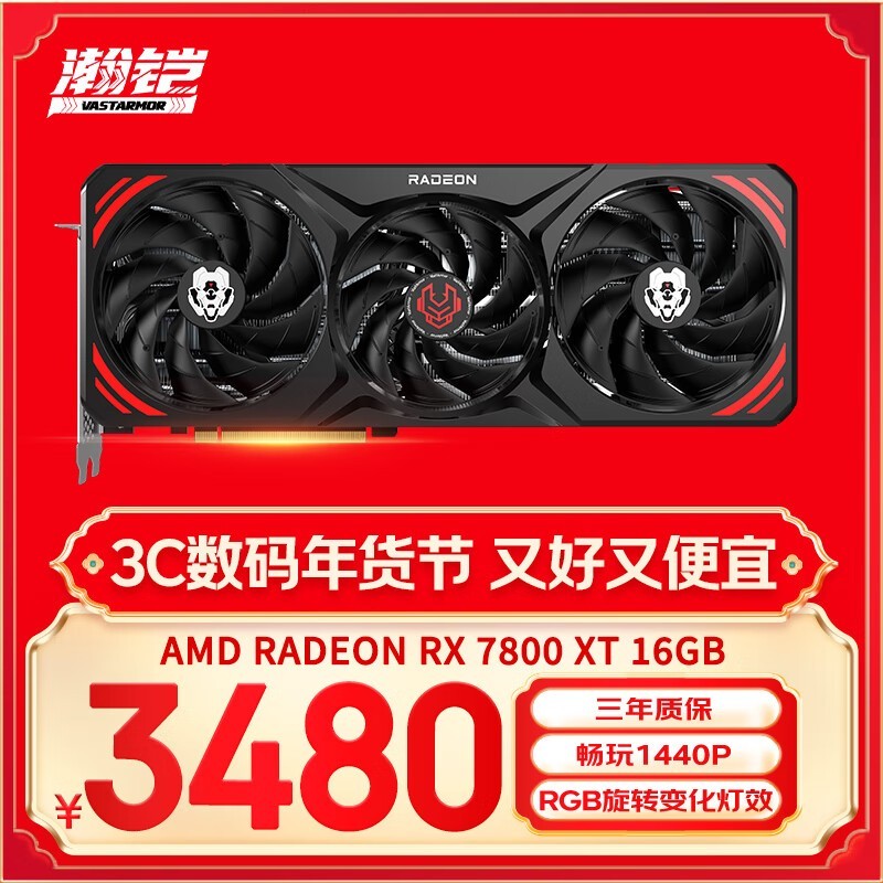 瀚铠 VASTARMOR AMD RADEON RX 7800 XT 16G 合金版 显卡 3480元