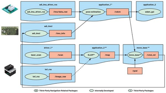 ADI针对不同的专用模块开发了ROS驱动程序。为了展示所开发的驱动程序并利用ROS的功能,ADI也开发了ADI自主移动机器人(ADAM)作为内部自主移动平台(参见图四)。