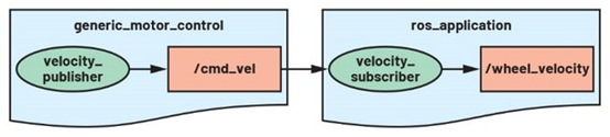 在图二中,generic_motor_control的节点是广播者。/cmd_vel是velocity_ publisher发表的主题。这表示,velocity_publisher提供基于马达控制(或命令速度)的速度信息。