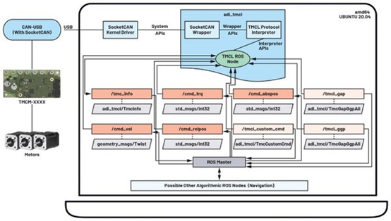 在本文探讨的所有产品中,将重点关注用于ADITrinamic马达控制器的ROS驱动程序,该驱动程序是用于嵌入式运动控制的完整板级模块,融合ADITrinamic运动控制专业知识,以及ADI的模拟技术和电源设计技能。