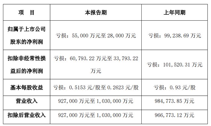 预计2024年归母净利润亏损55,000 万元至 28,000 万元,扣非净利润亏损60,793.22 万元至 33,793.22万元。