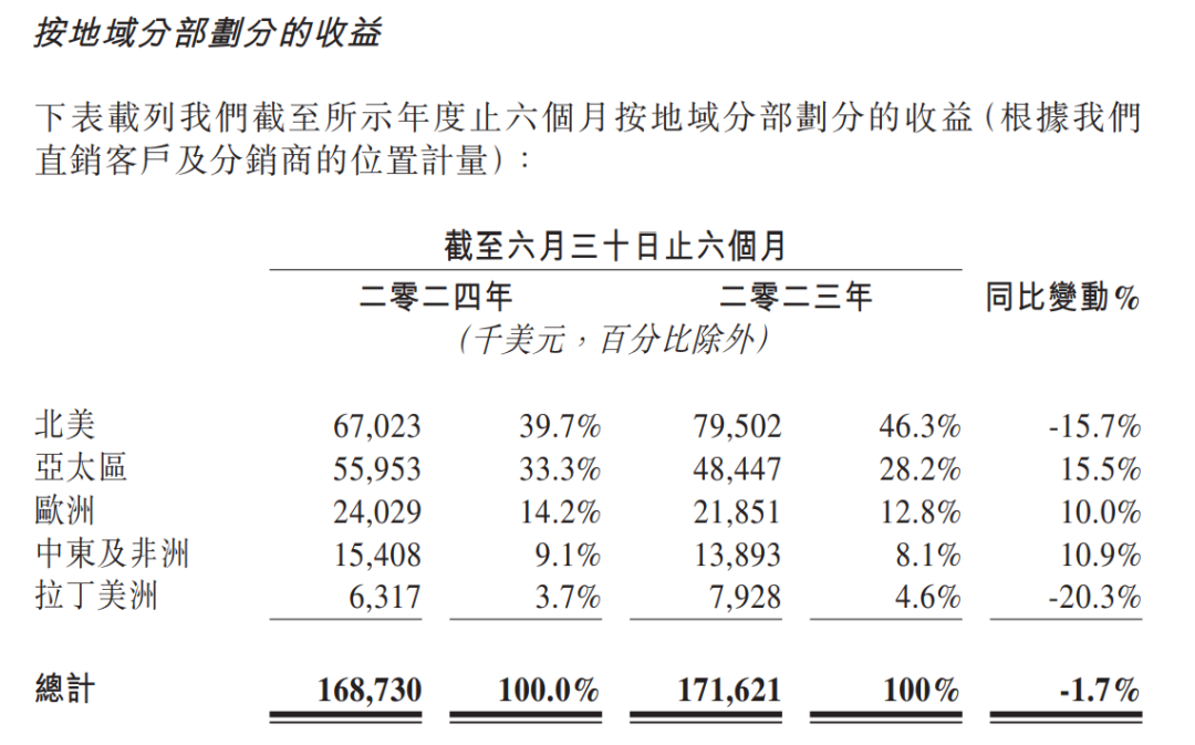 此外,公司2024年上半年来自欧洲、中东及非洲的收入占比分别为14.2%、9.1%。