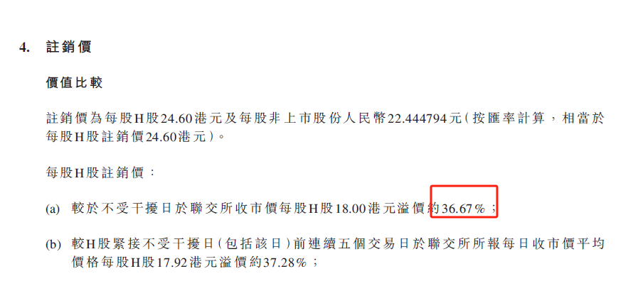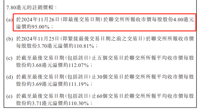 公告显示,以该计划生效为前提,全部计划股份(受托人未获分配的计划股份除外)将予以注销,以就每股计划股份换取现金7.8港元。7.8港元的注销价较2024年11月26日(即最后交易日期)于联交所所报收市价溢价约95%。