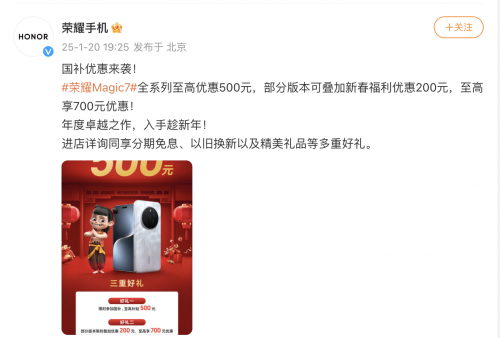 值此新年之际,此次国补大促的开启,无疑为消费者提供了更加实惠的购机选择。无论是追求极致性能的科技爱好者,还是注重性价比的实用主义者,都能在荣耀的产品线中找到适合自己的那一款。愿大家在新的一年里,都能选购到心仪的产品,畅享科技带来的便捷与美好!