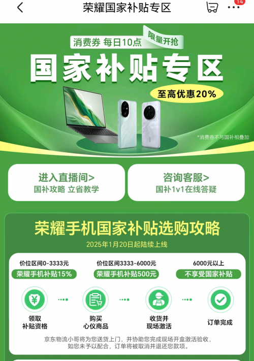 值此新年之际,此次国补大促的开启,无疑为消费者提供了更加实惠的购机选择。无论是追求极致性能的科技爱好者,还是注重性价比的实用主义者,都能在荣耀的产品线中找到适合自己的那一款。愿大家在新的一年里,都能选购到心仪的产品,畅享科技带来的便捷与美好!