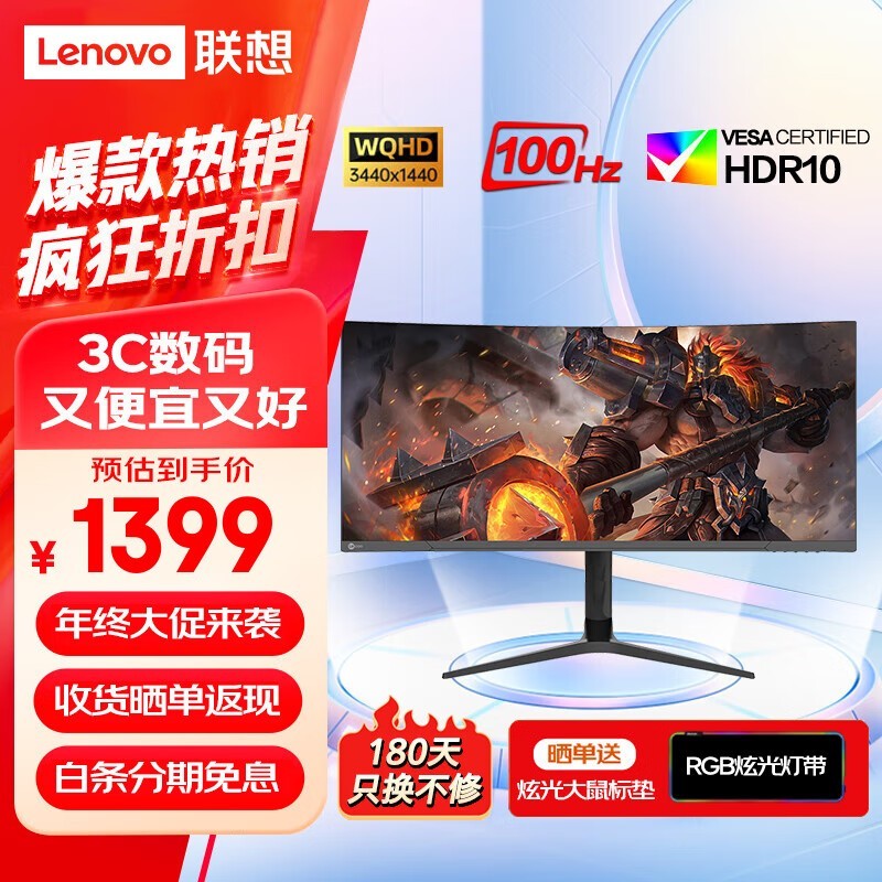联想M3434QLC:21:9电竞巨屏,100Hz高刷+智能分屏,专业游戏与办公的视觉利器