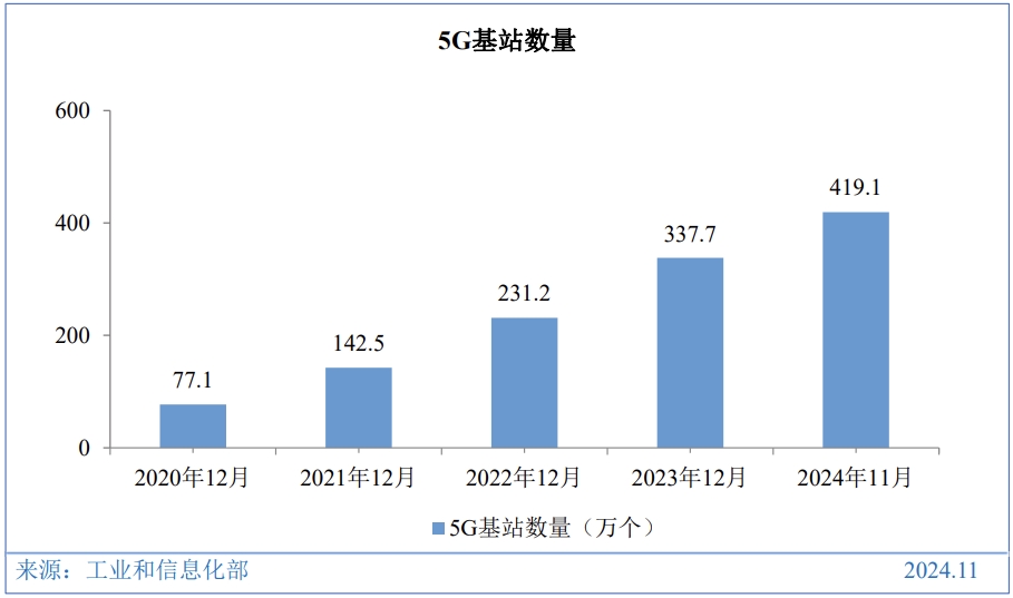 二是新型信息基础设施协调发展。截至11月,已累计建成5G基站达419.1万个,比上年末净增81.5万个;3家基础电信企业发展蜂窝物联网终端用户26.42亿户,占移动网终端连接数的比重达59.6%,人、机、物泛在智联有序推进,为更多用户接入互联网服务提供坚实支撑。
