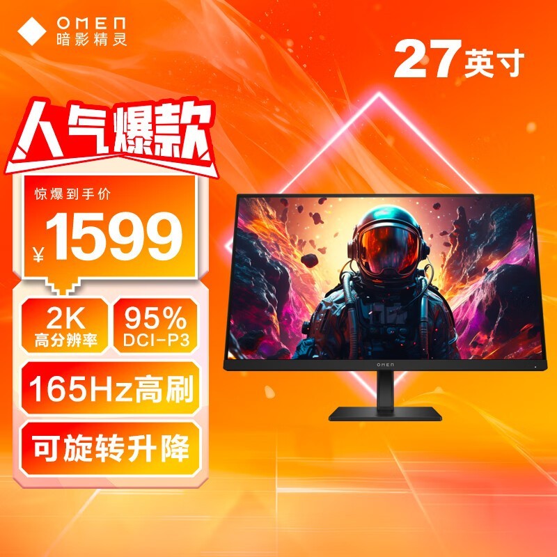 惠普OMEN 27q:165Hz电竞显示器,4K影院级画质,1599元畅享专业游戏体验