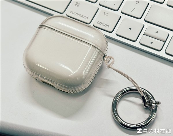 此外,在充电盒上还配有一个集成的挂绳扣,方便用户使用挂绳随身携带,而AirPods 4的充电盒上则没有。当然,我的解决方案是买一个带有挂绳的耳机保护壳(如下图),日常使用也很方便。