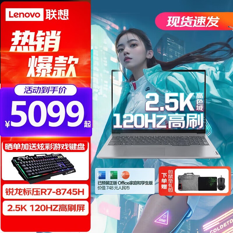 联想ThinkBook 16 2024款锐龙版笔记本电脑性能、轻薄兼具!