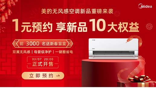 美的无风感十周年特别款WF1挂机已在电商平台启动了一元预约活动,通过预约新品,将享有十大新品权益,更有国补八折优惠更划算。