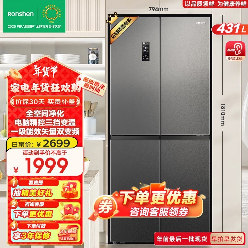 容声 BCD-431WD12FP 十字对开门冰箱 431升