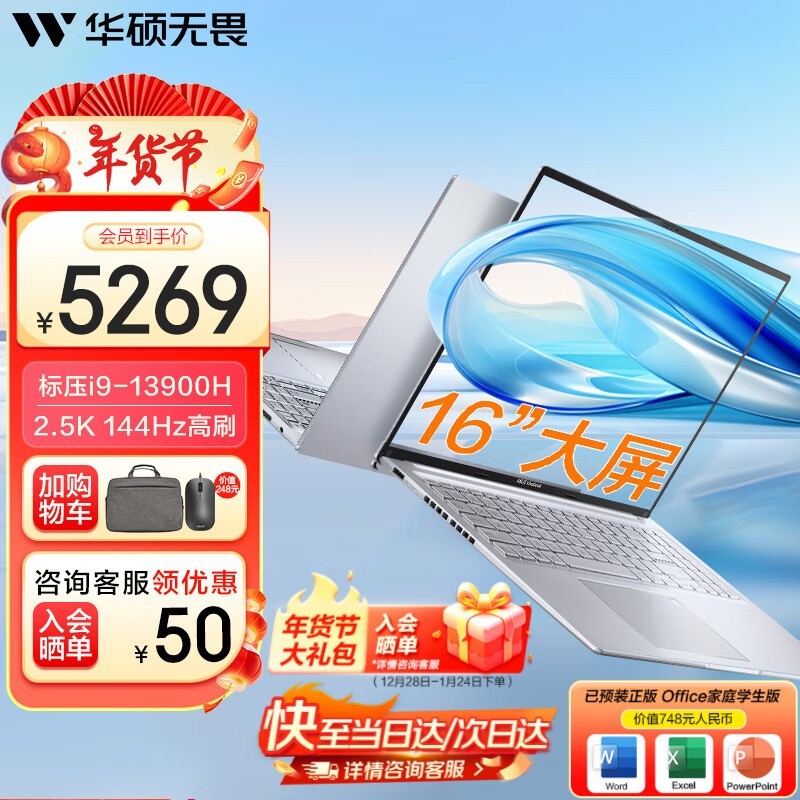 华硕无畏16轻薄笔记本电脑仅售5099元 限时优惠