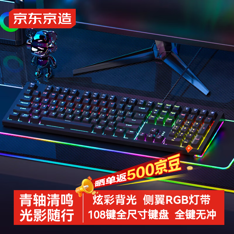 京东京造青轴有线机械键盘104键 暗夜骑士系列仅售129元