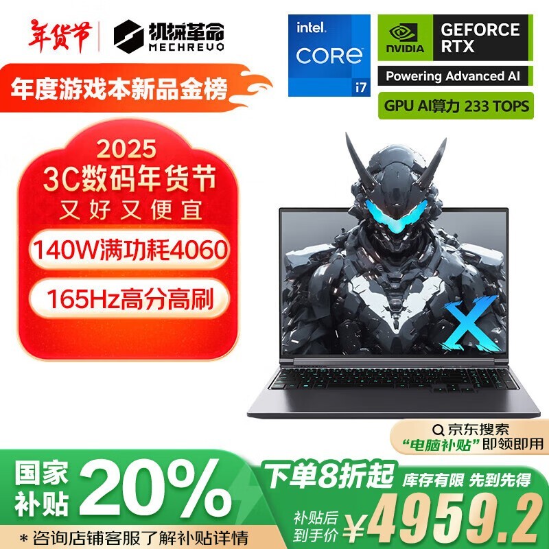 机械革命极光X游戏本限时优惠4819元 搭载十二代i7+RTX 4060