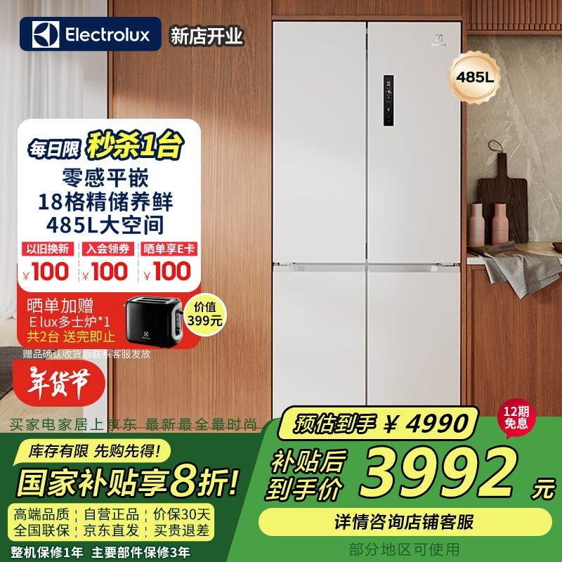 超值抢购!伊莱克斯冰箱3976元到手