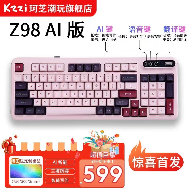 珂芝Z98AI版三模机械键盘 499入手超值!智能客制化+办公利器